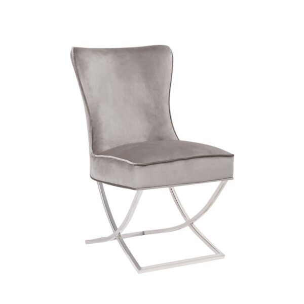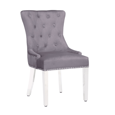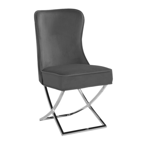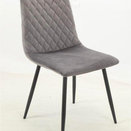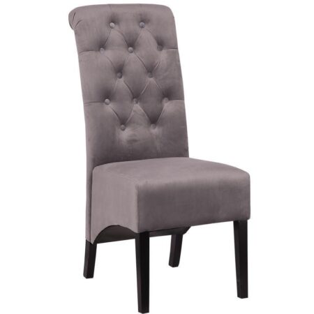 Megan Long Dark Grey Velvet Dining Chair with Black Wood Legs