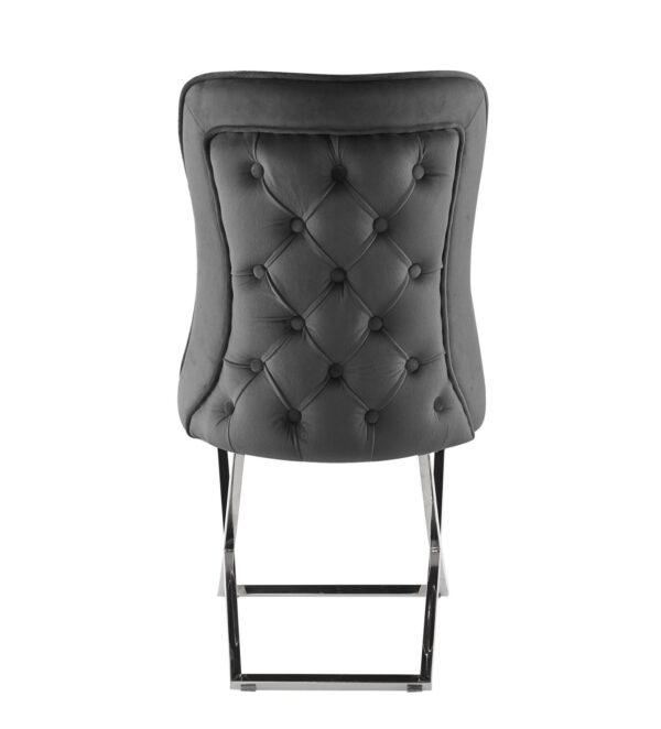 The Julia Dark Grey Chair adorns a soft cushioned base and buttoned back for ultimate luxury and comfort.