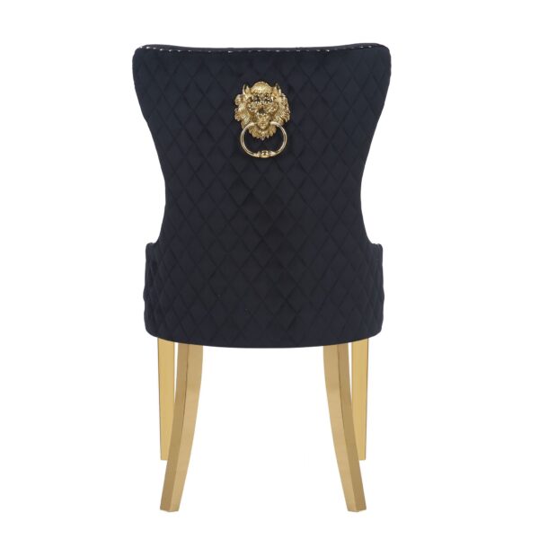 A prominent lion knocker features the back of the chair for a little added luxury.