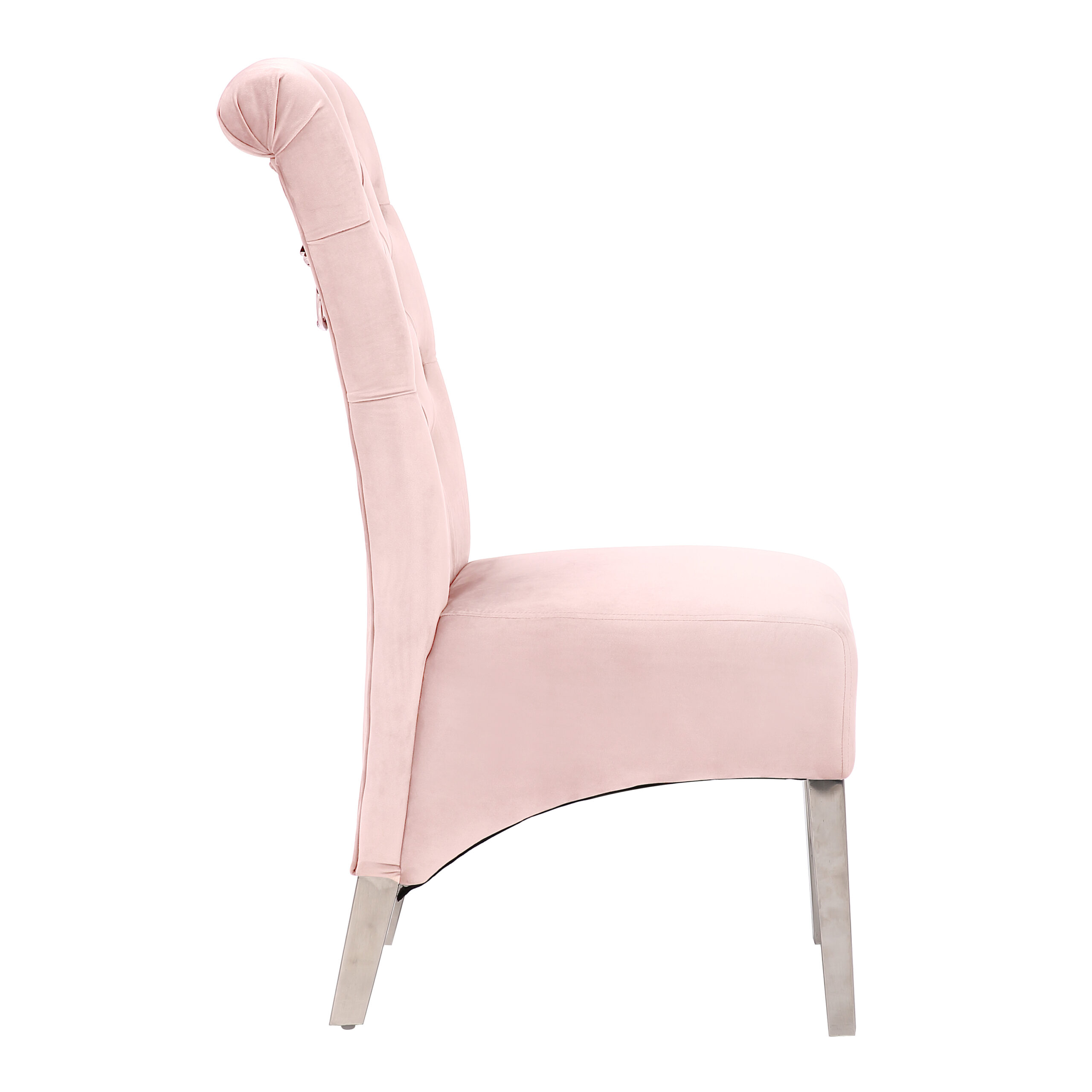 Megan Long Light Pink Velvet Dining Chair with Lion Knockerback