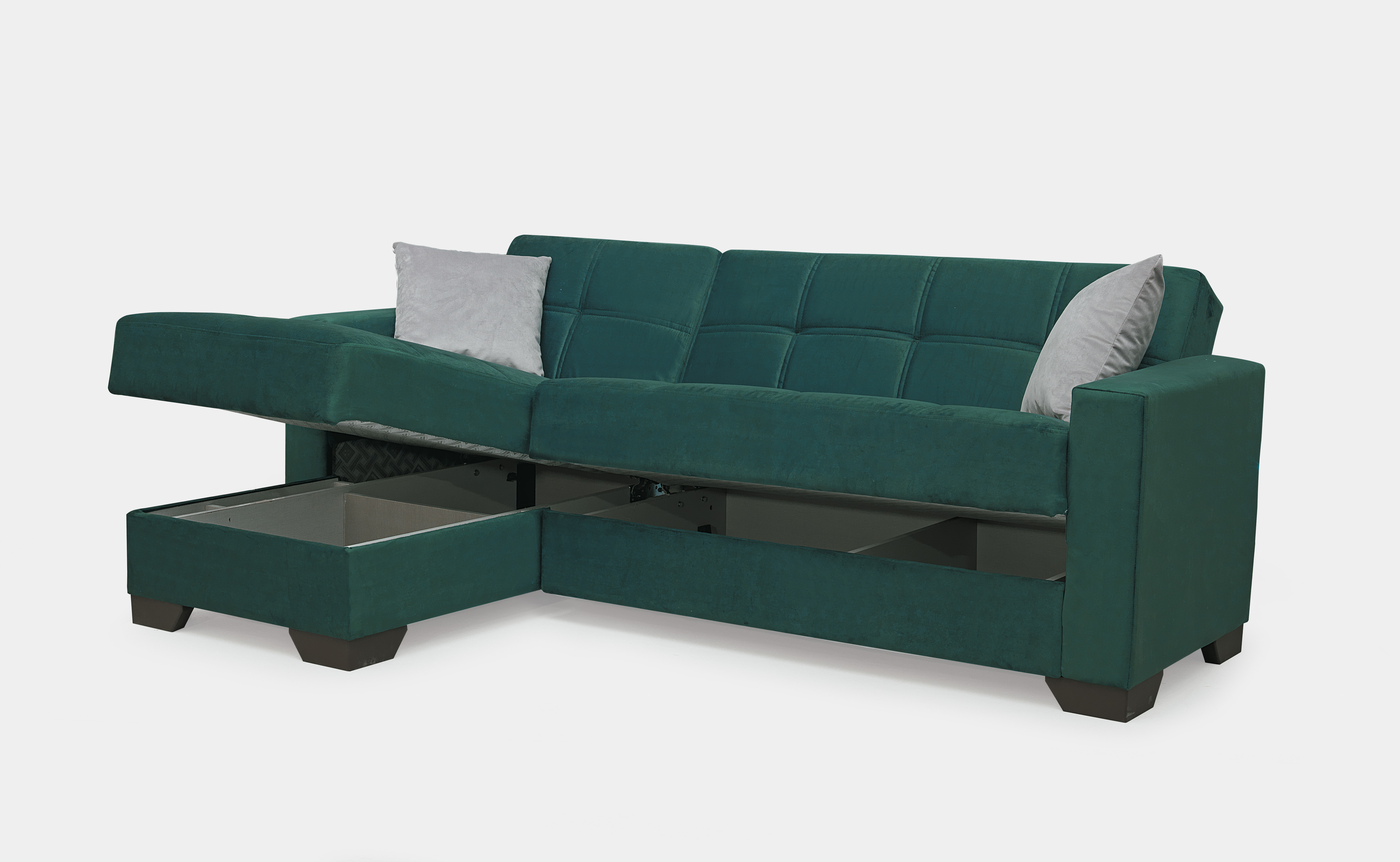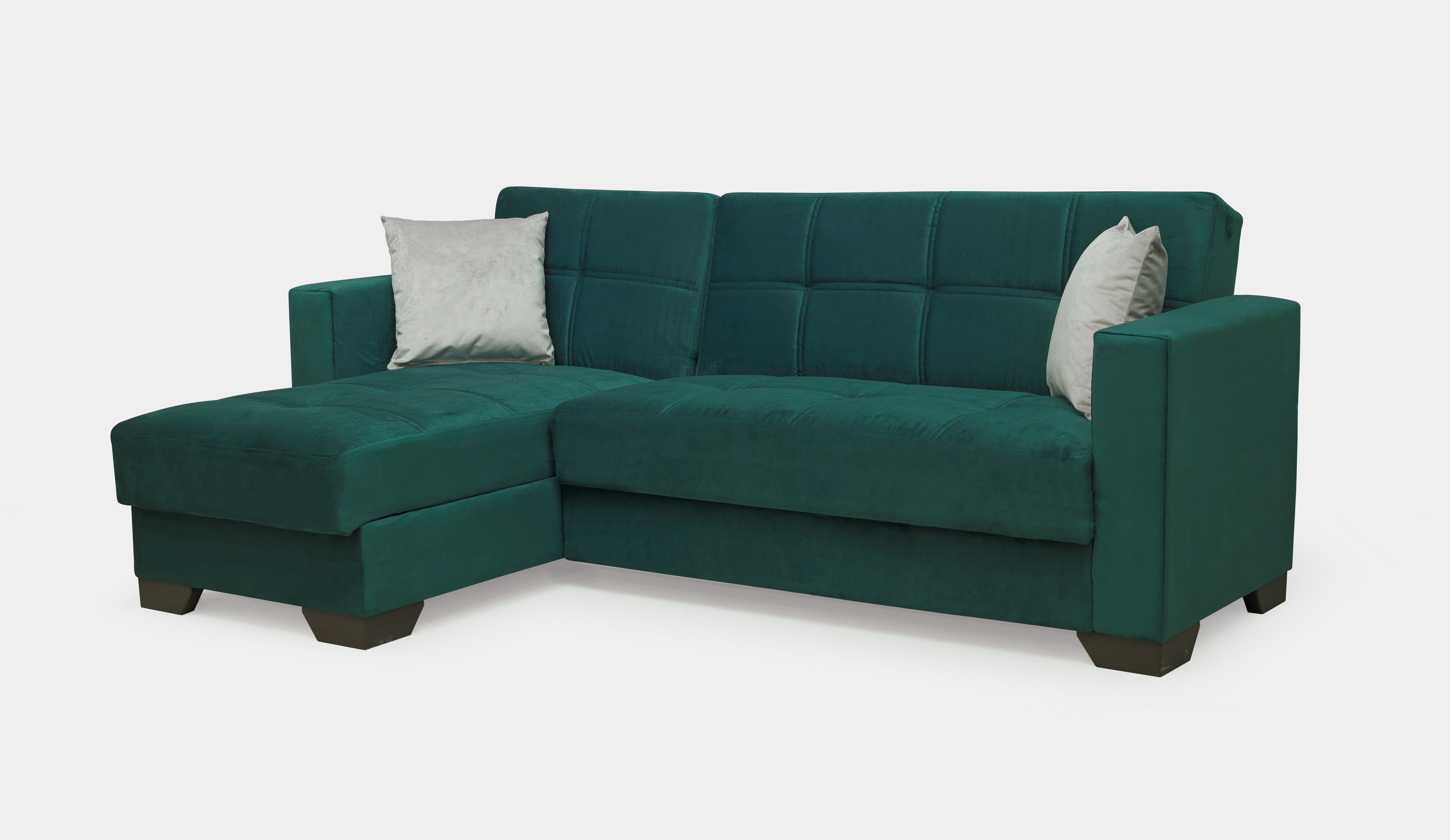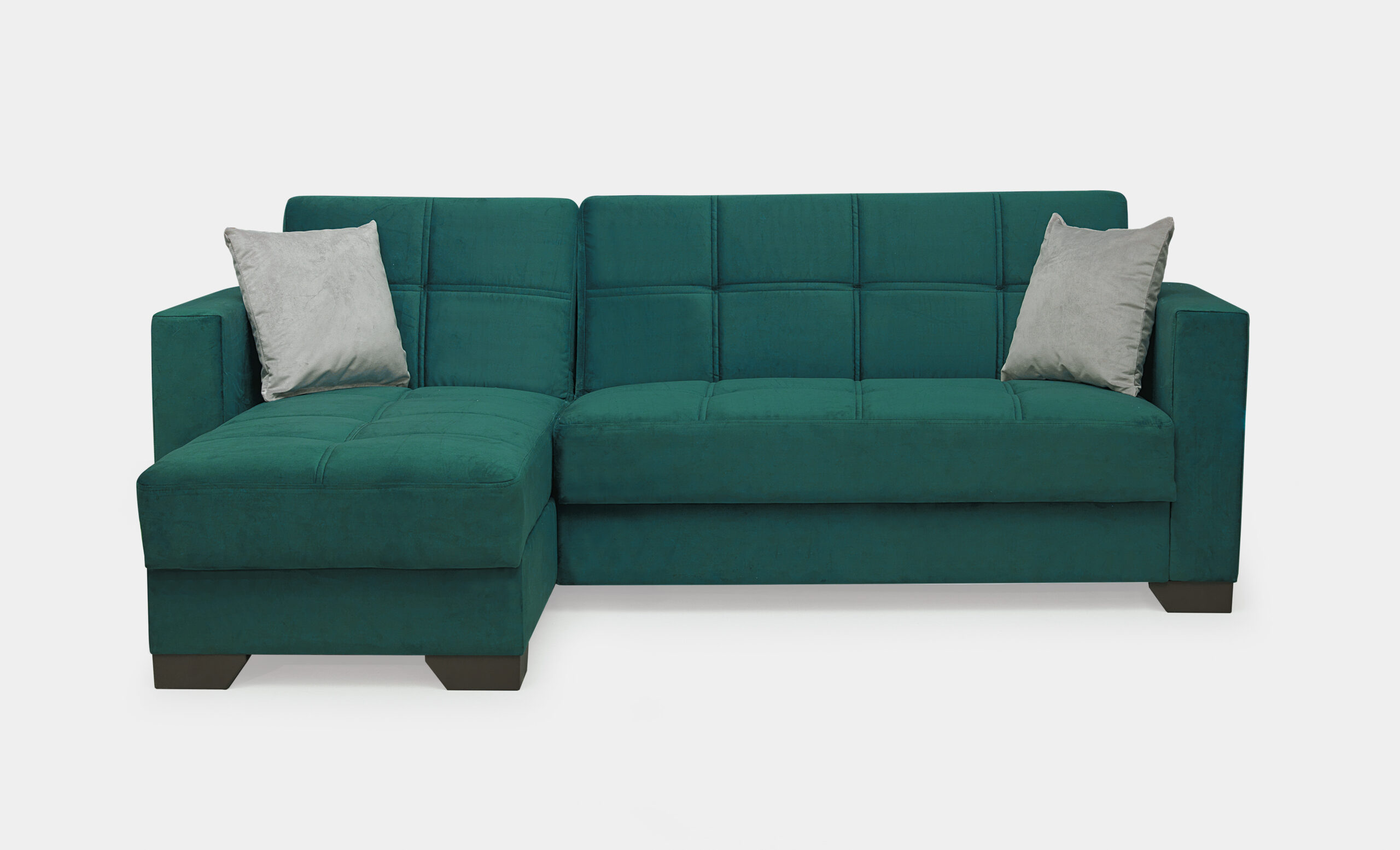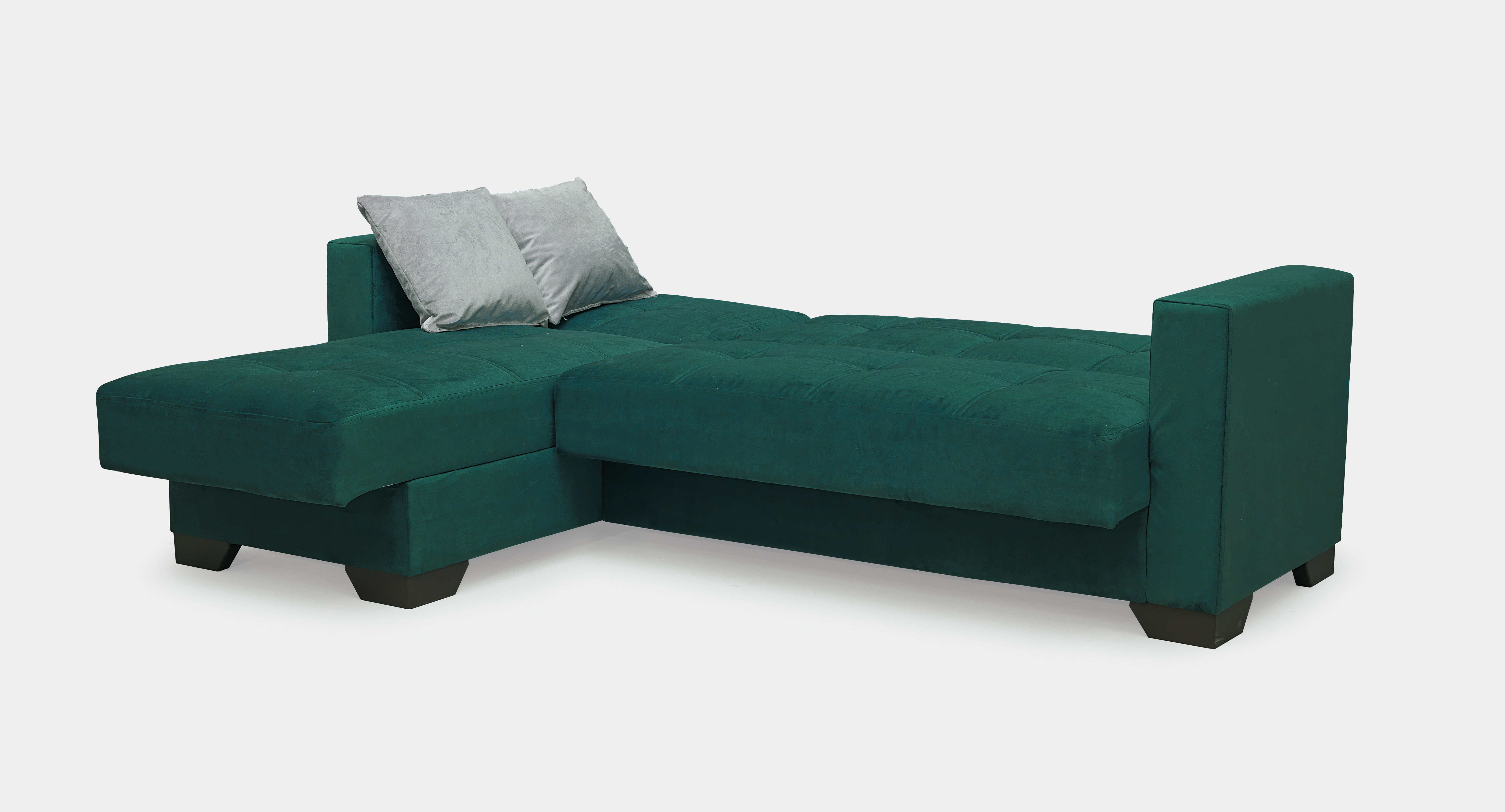 Merlin Emerald Sofa Bed with Grey Pillows