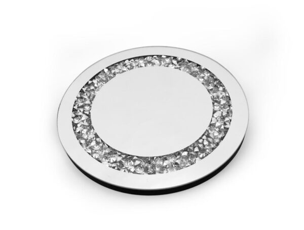 Round mirrored candle plate with a diamond crush border.