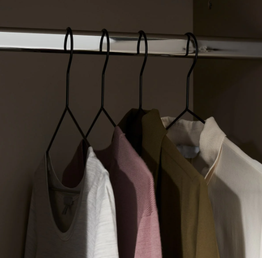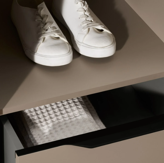 The inside consists of shelves and hanging space along with three drawer on the bottom for even more storage space.