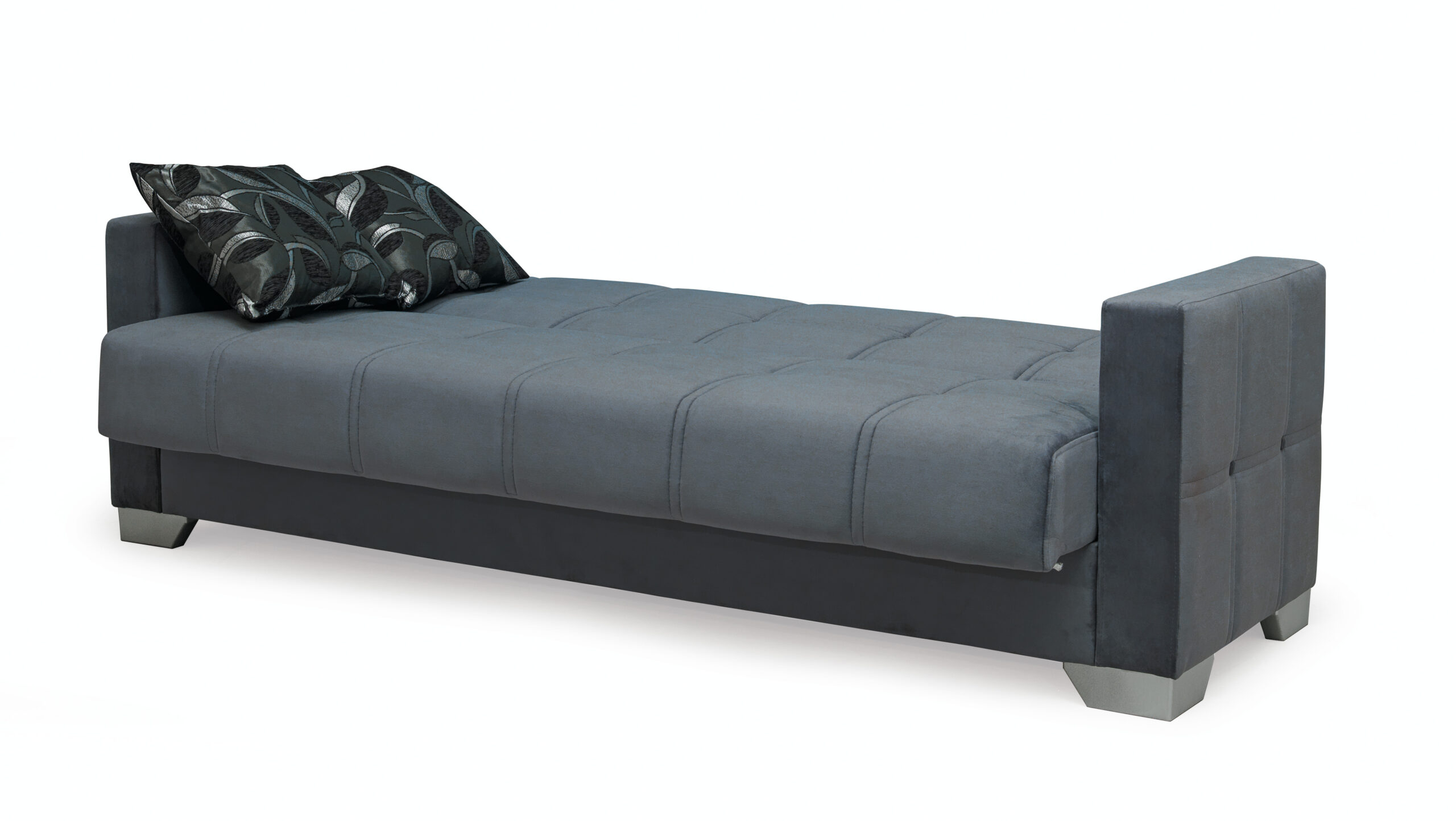 The Montreal sofa bed easily converts into a comfortable sleeping space, making it perfect for overnight guests or for those who live in smaller homes. Its sturdy construction ensures durability and longevity, while the plush velvet upholstery guarantees comfort and luxury. Upgrade your living space with the Montreal Dark Grey Plush Velvet Sofa Bed with Grey Patterned Pillows today!