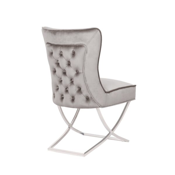 The Silver Juliet Light Grey Chair adorns a soft cushioned base and back for ultimate luxury and comfort.