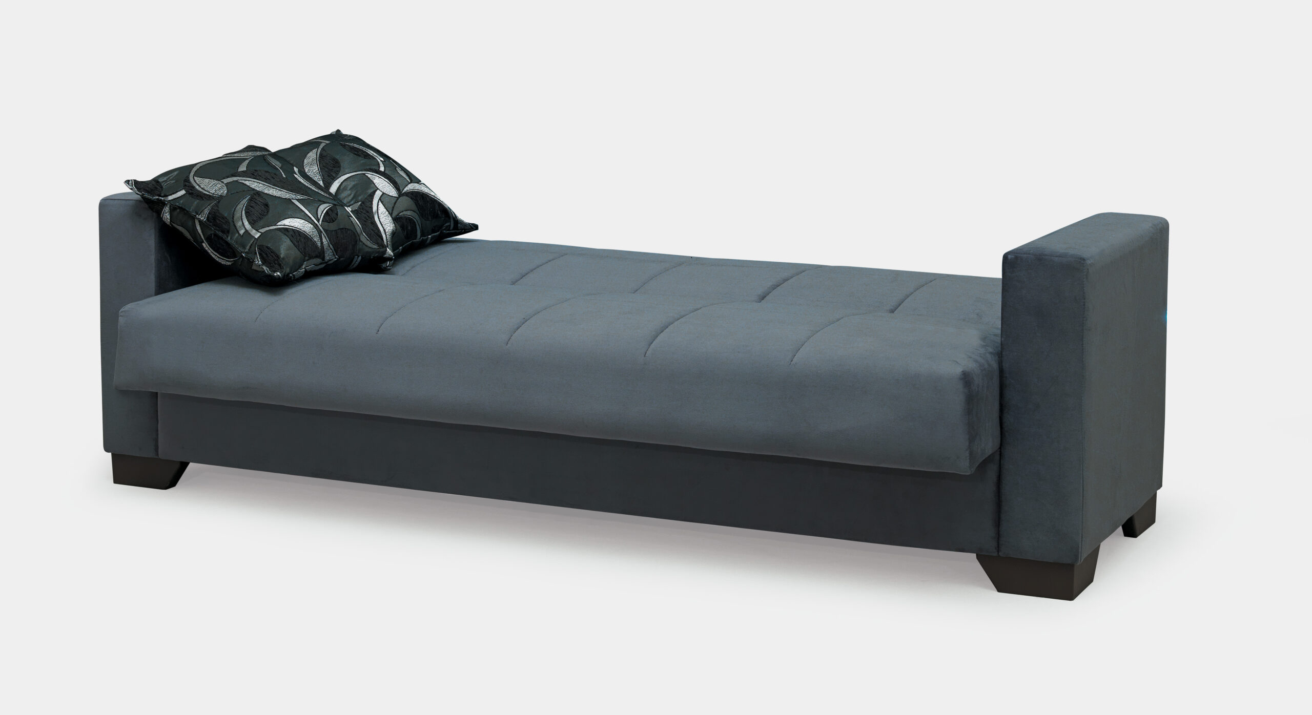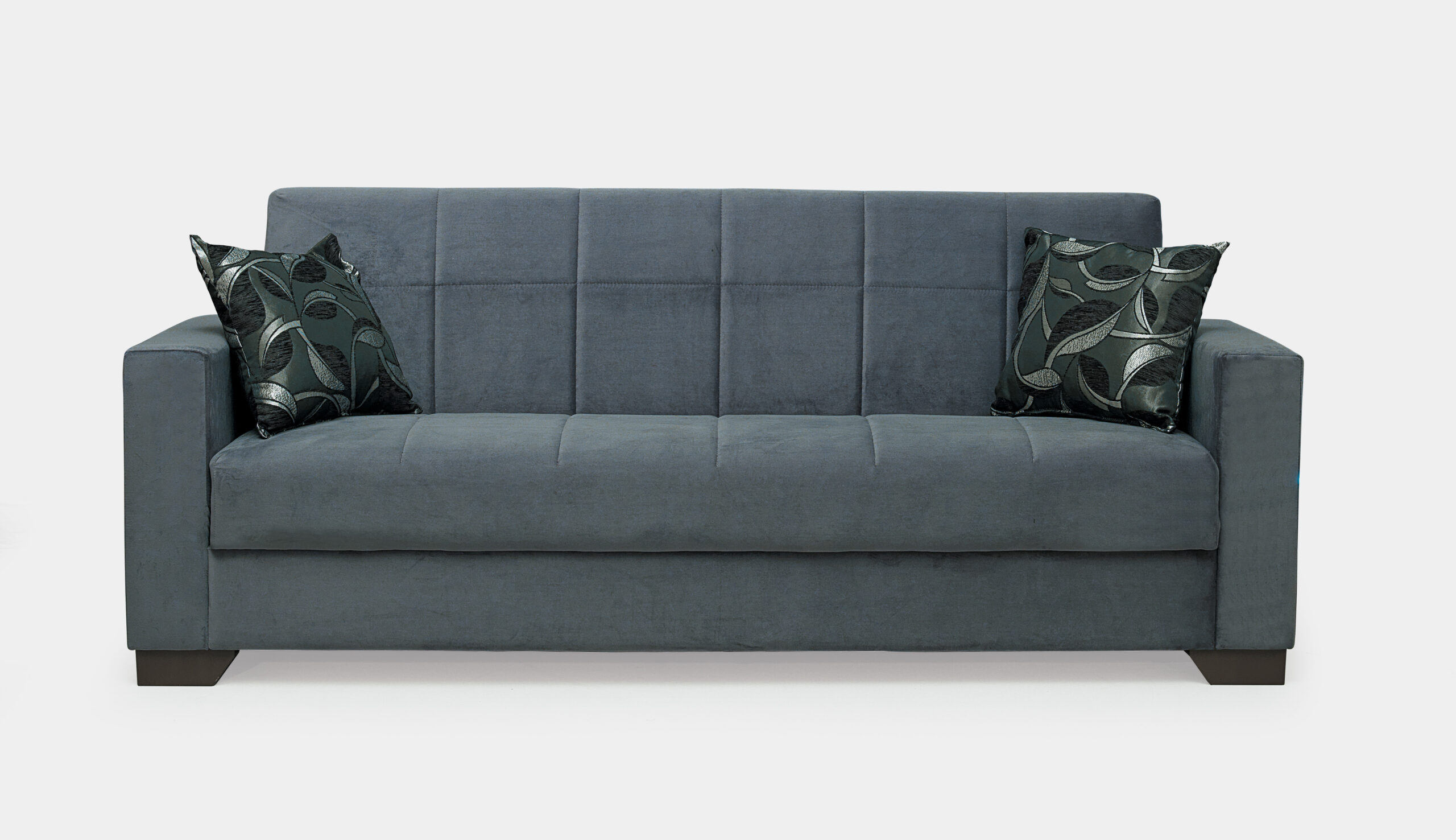 Vermont Dark Grey Plush Velvet Sofa Bed with Grey Patterned Pillows